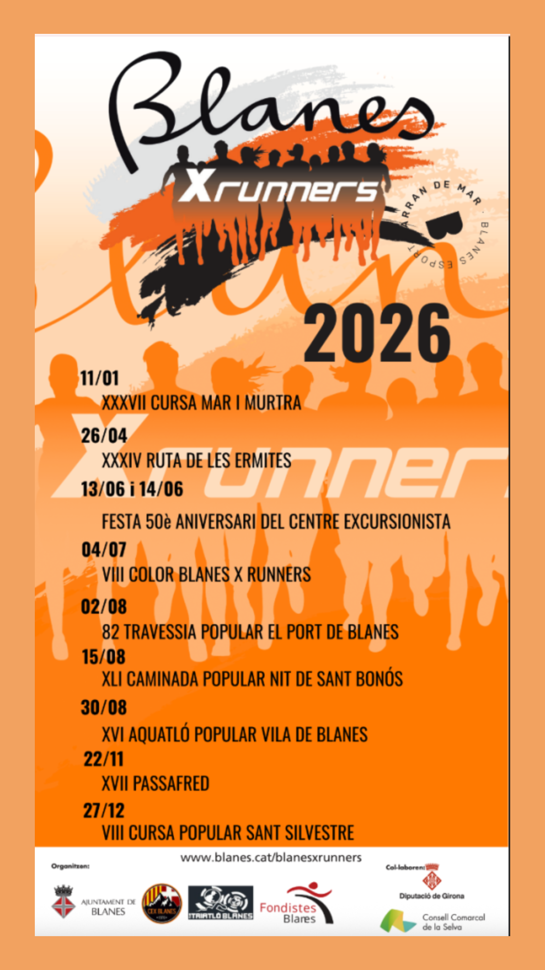 XXXIV Ruta de les Ermites 13-06-2026 Blanes · https://www.blanes.cat/blanesxrunners Participa en una de les curses de la Ruta de les Ermites. Més informació a www.blanes.cat/blanesxrunners Comparteix-hoFacebookPinterestTwitterLinkedin
