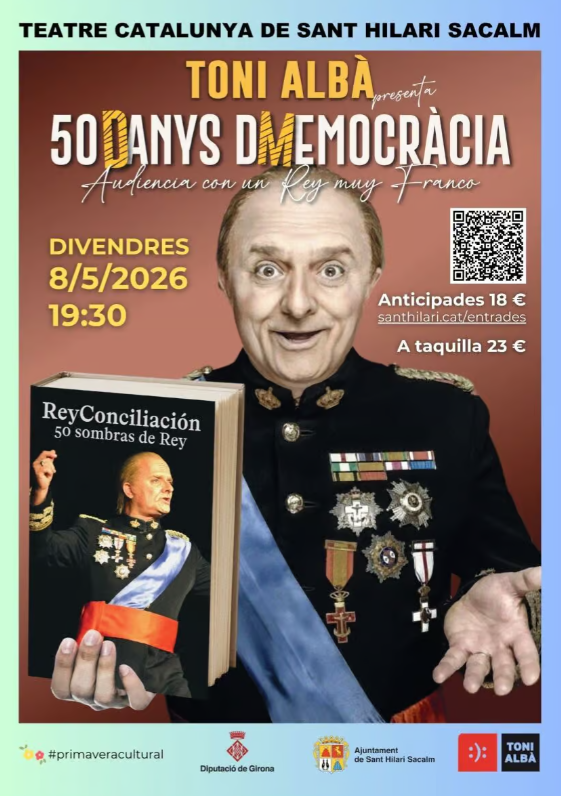Espectacle 50 d’Anys d’Memocràcia de Toni Albà 08-05-2026 Sant Hilari Sacalm · https://www.santhilari.cat/agenda/espectacle-50-danys-dmemocracia-de-toni-alba/ El 8 de maig, a 2/4 de 8 del vespre, al Teatre Catalunya vine a gaudir de l’espectacle. Entrades aquí Comparteix-hoFacebookPinterestTwitterLinkedin