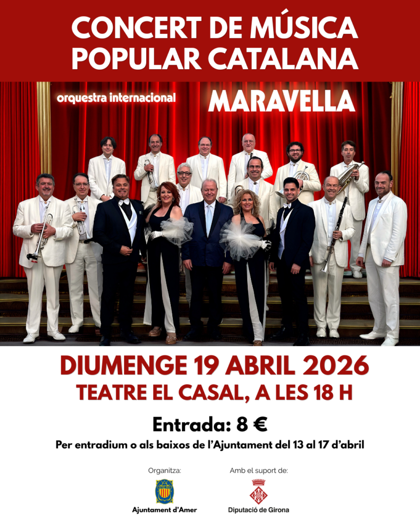 Diumenge 19 d’abril, a les 18 h al Teatre El Casal d’Amer. Entrada 8 € a entradium i oficines Ajuntament